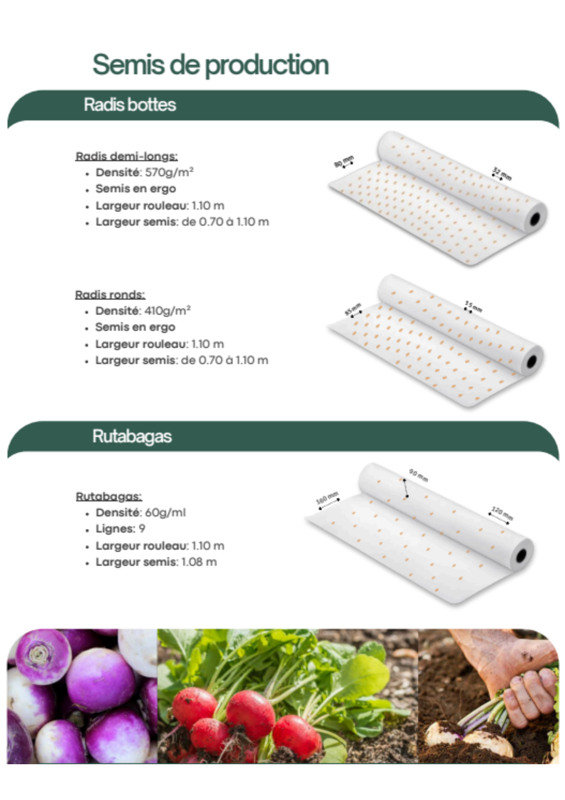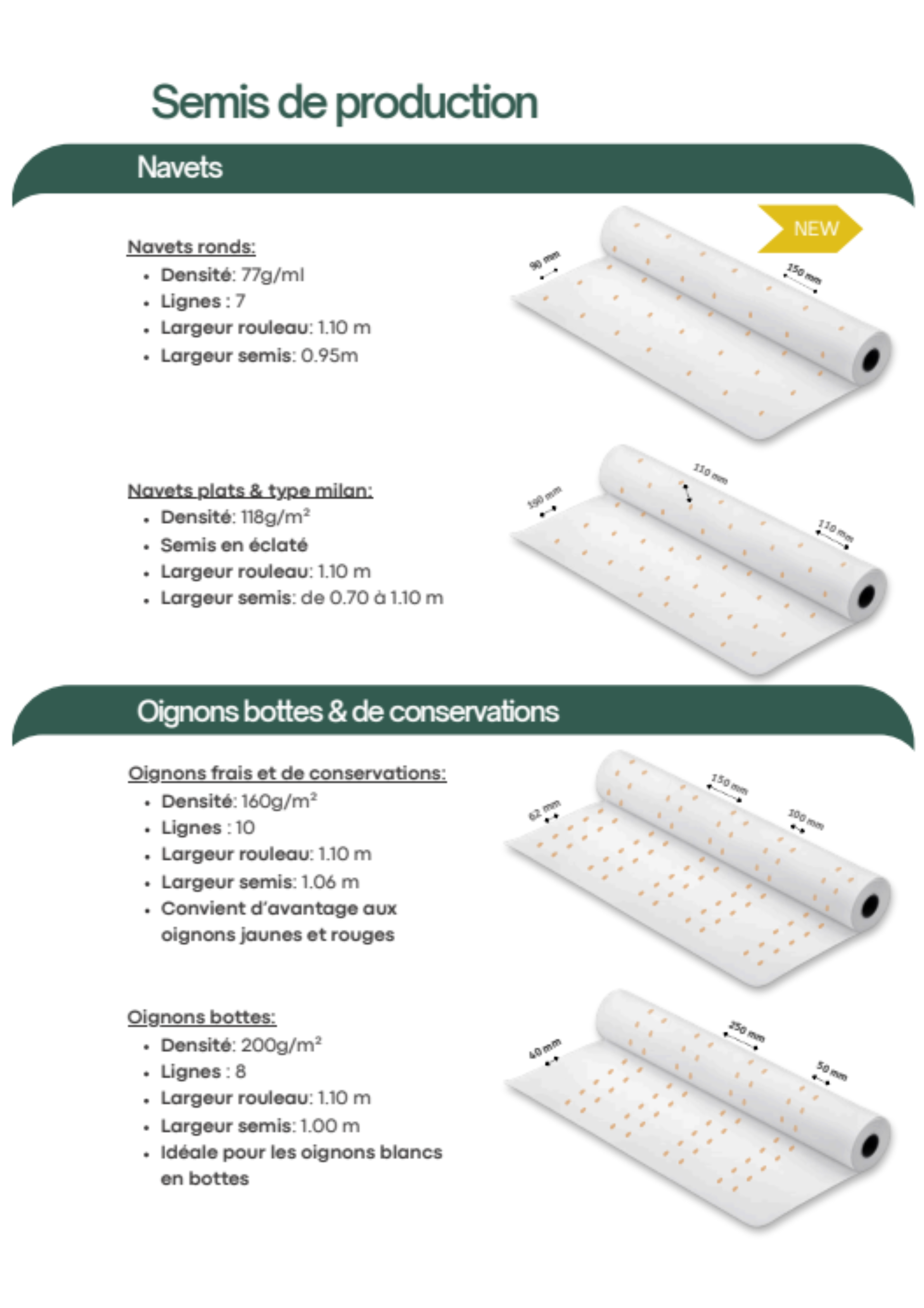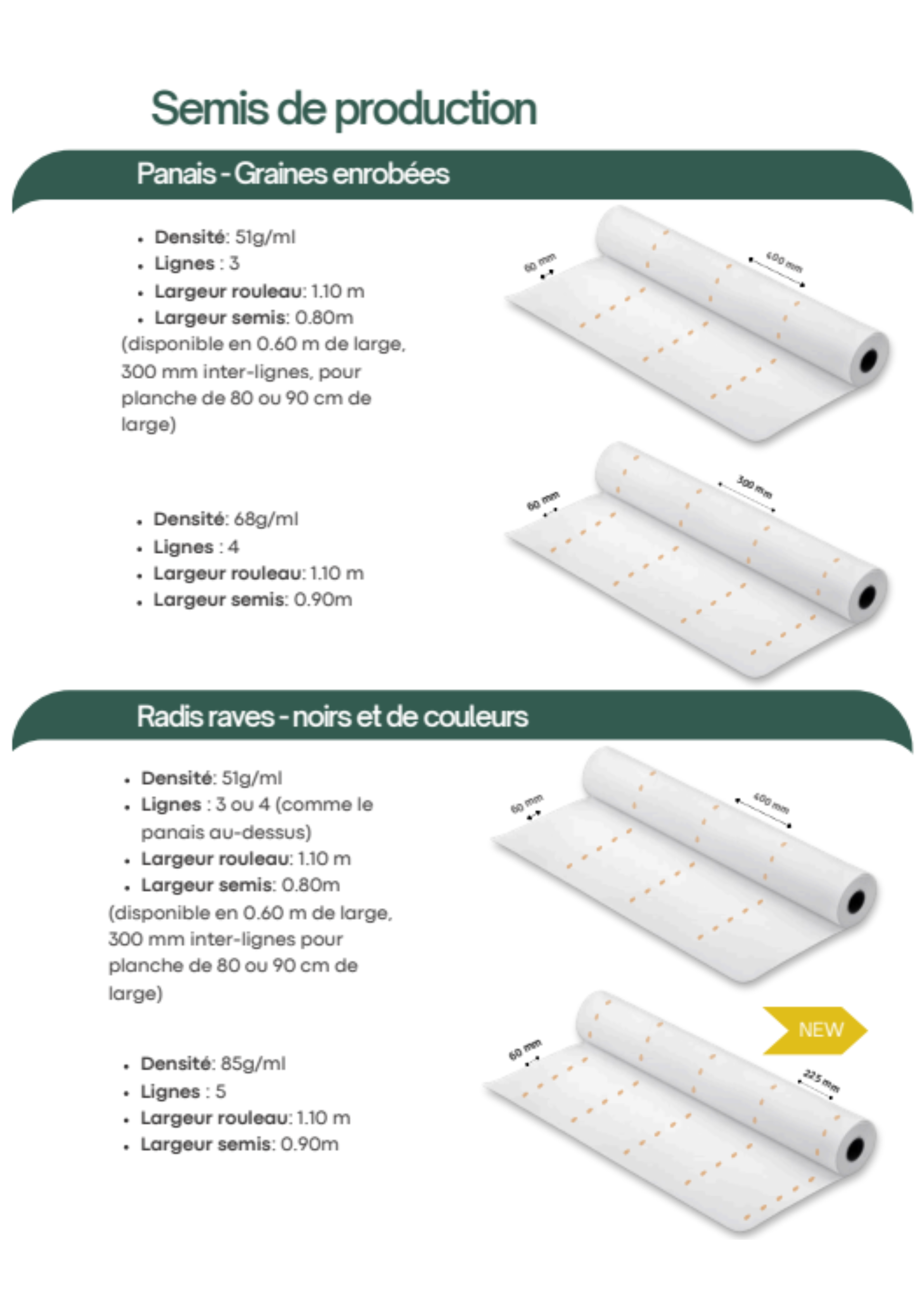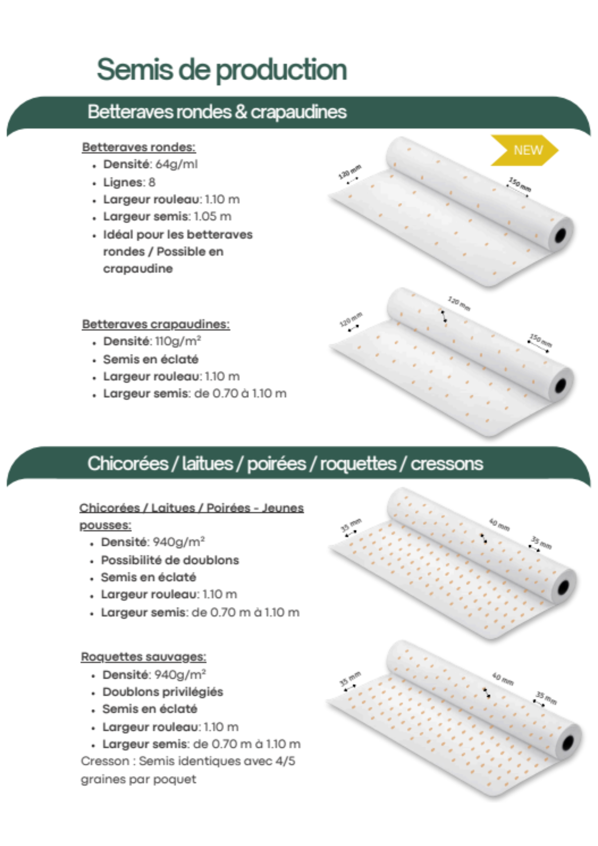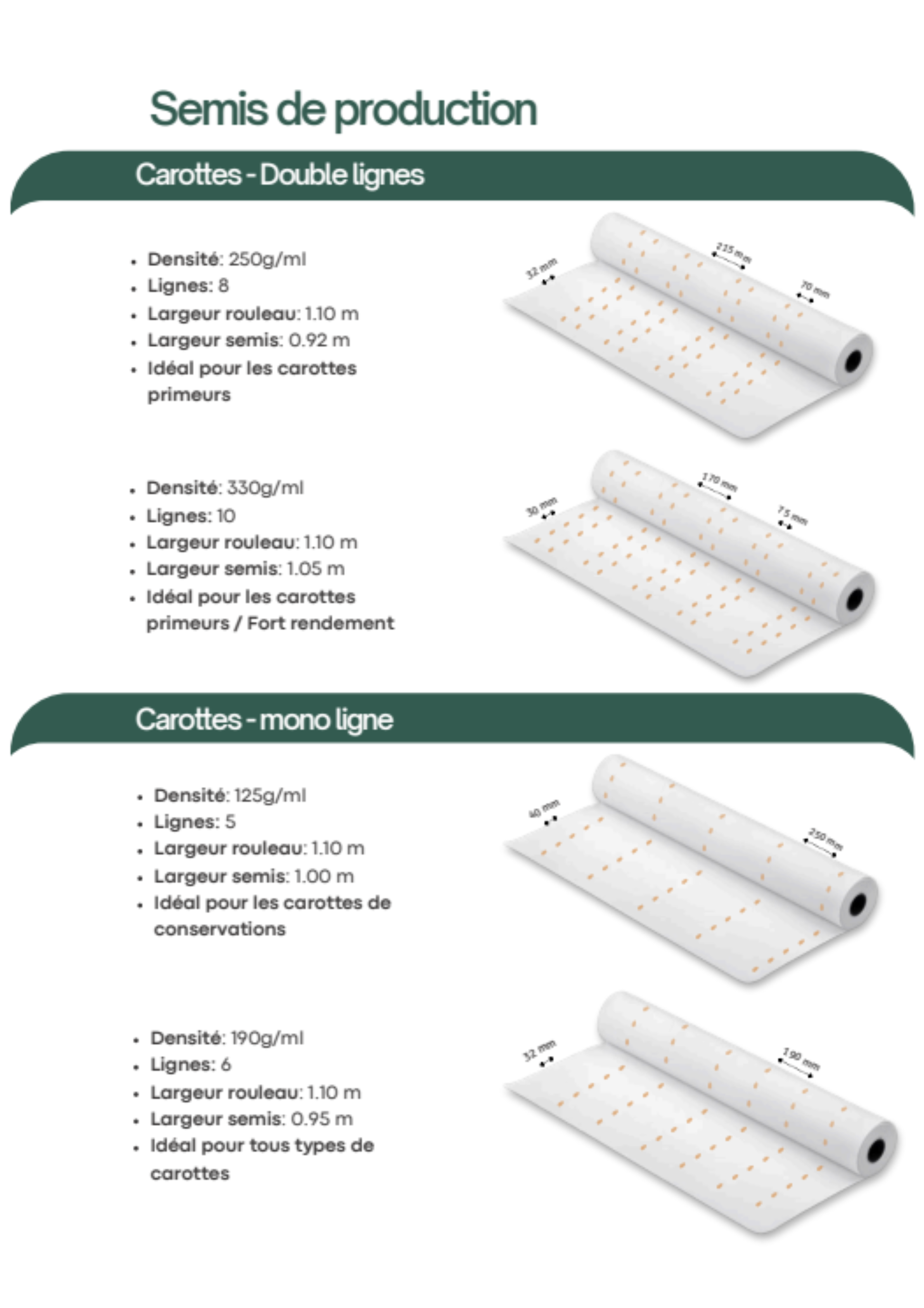 Les graines sont intégrées dans une ouate de cellulose biodégradable, certifiée FSC et issue d’une entreprise française, garantissant des semis précis, homogènes et sans besoin d’éclaircir. Nous proposons des semis biologiques certifiés ainsi que conventionnels, alliant qualité, précision et savoir-faire !